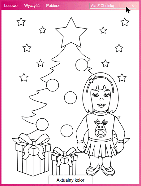 Wybierz kolorowankę do pokolorowania z rozwijanej listy u góry, a następnie skorzystaj z palety kolorów u dołu obrazka.